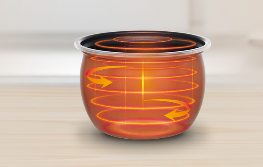 IH(Induction Heating)屬磁力內鍋直接加熱,讓整個內鍋本身發熱,效果包括: