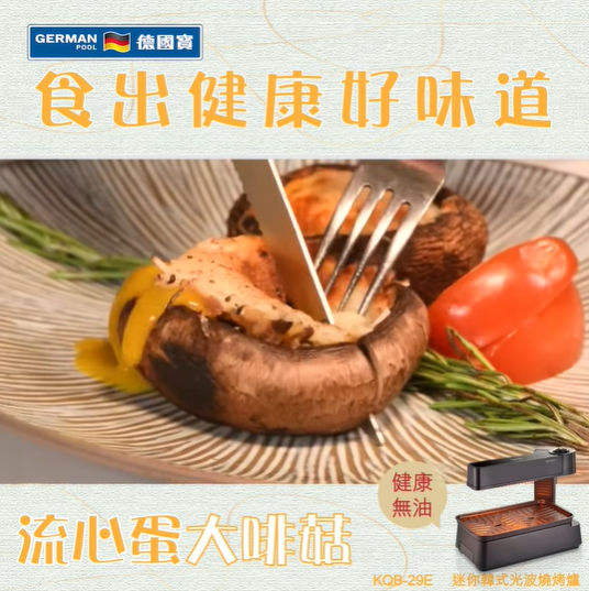 大啡菇、流心蛋黃、邪惡芝士,加埋韓式燒烤嘅香氣,香港人想像到都已經流口水。如果以上三種「必殺元素」可以喺屋企輕鬆做到,而且仲係健康少油、無油煙唔焗促,對忙碌嘅香港家庭嚟講簡直係夢幻組合。今次以 迷你韓式光波燒烤爐 炮製爆漿邪惡流心大啡菇,5 分鐘搞掂,味道、賣相、方便程度都屬高水準,是忙碌晚餐與週末小確幸的完美選擇。