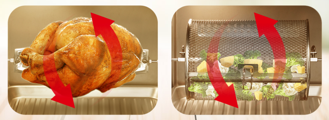 SGV-1538L 採用360°自動旋轉加熱技術,令食物在烹調過程中自動旋轉,熱力可以全面覆蓋食材表面。無論是烤雞、薯條或焗蛋糕,都可以達到外脆內嫩的理想效果,毋須手動翻面,真正節省時間。