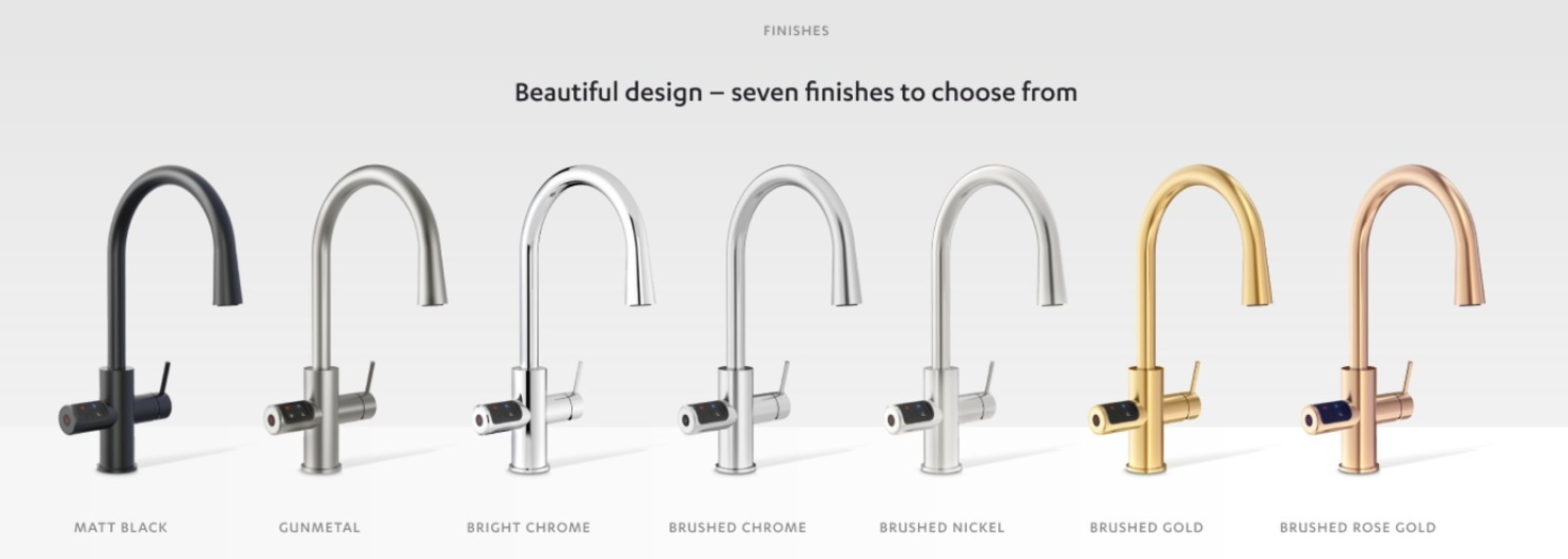 Zip Water淨化直飲系統提供多種水龍頭款式,由華麗時尚到簡約精緻任君選擇,能配搭不同家居風格。熱水型號亦支援 熱水安全鎖,避免兒童長者誤觸。