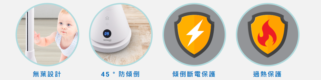 包括防傾倒斷電、過熱保護、45 ° 防傾倒等設計,全面保障寶寶安全。