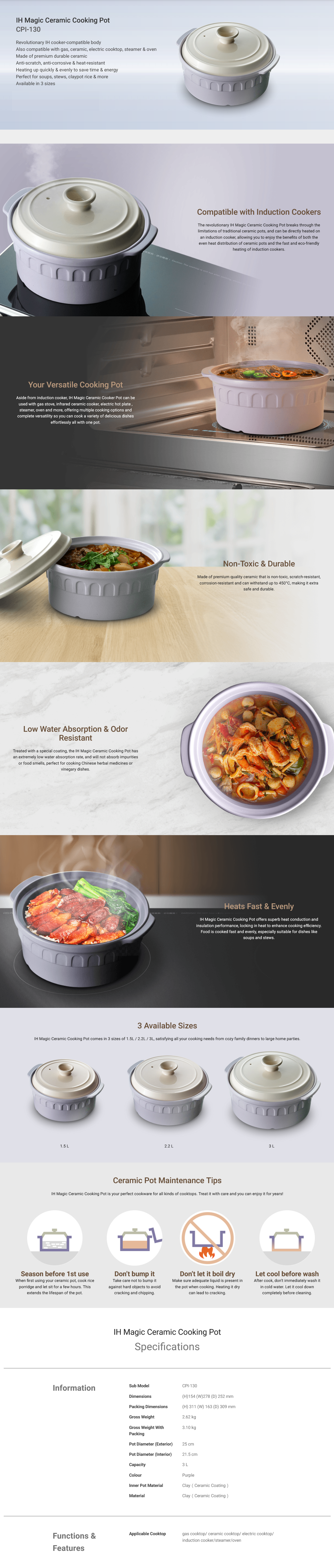 Also compatible with gas, ceramic, electric cooktop, steamer & oven