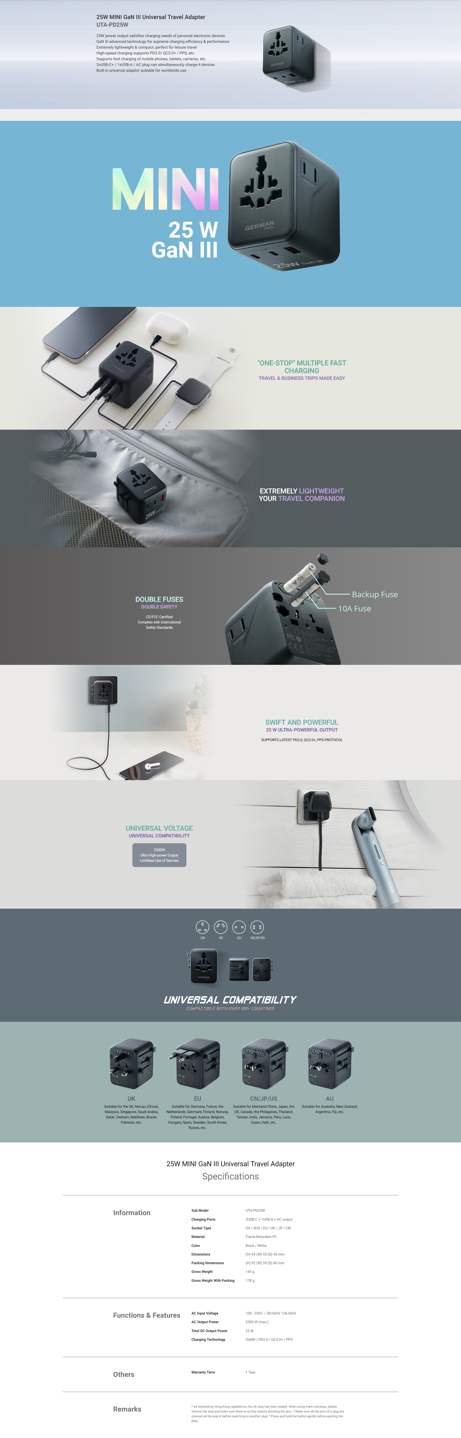 -25W MINI GaN III Universal Travel Adapter (White) UTA-PD25W-WT (1pc)
