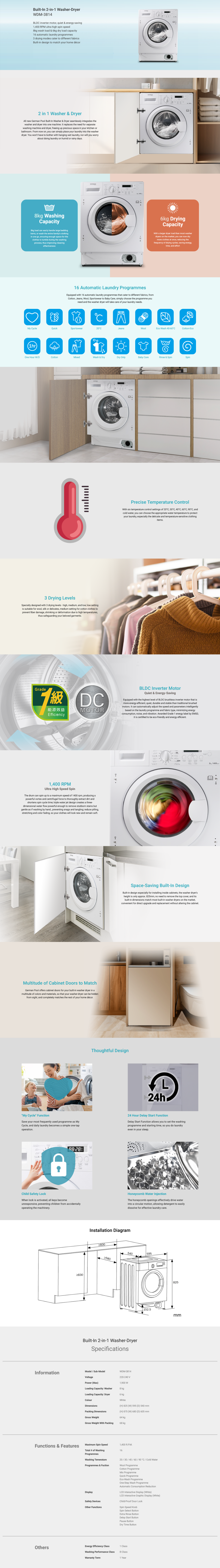 Built-in design especially for installing inside cabinets, the washer dryer’sheight is only approx. 825mm, no need to remove the top cover, and its built-indimensions match most built-in washer dryers on the market, convenient fordirect upgrade and replacement without altering the cabinet.