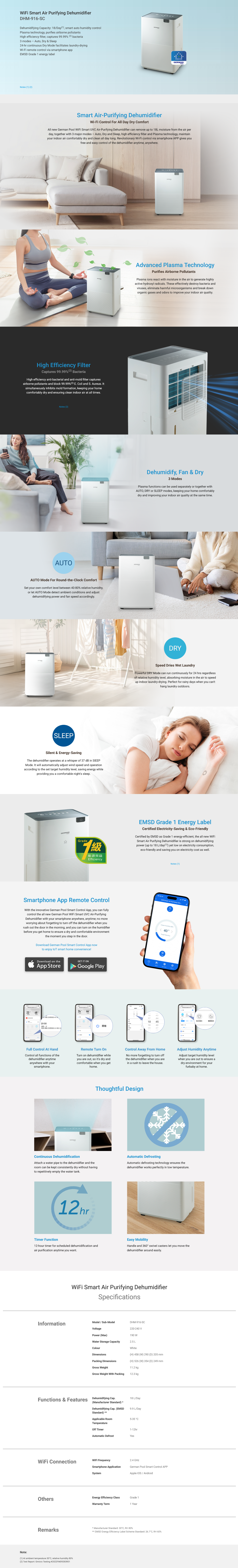 Dehumidifying Capacity: 18/Day, smart auto humidity control