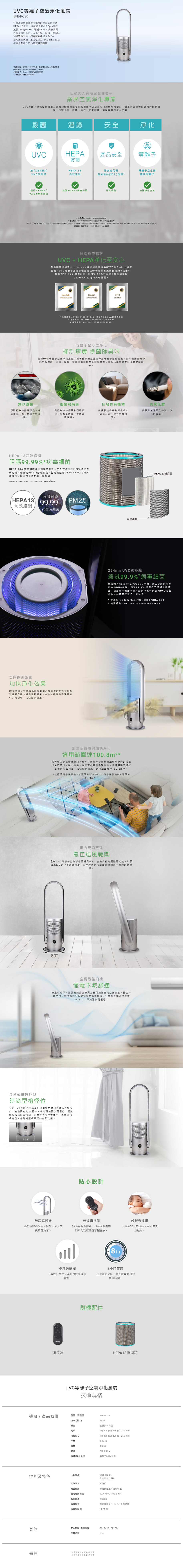 HEPA 13濾網,阻隔99.99%* 0.3μm微粒