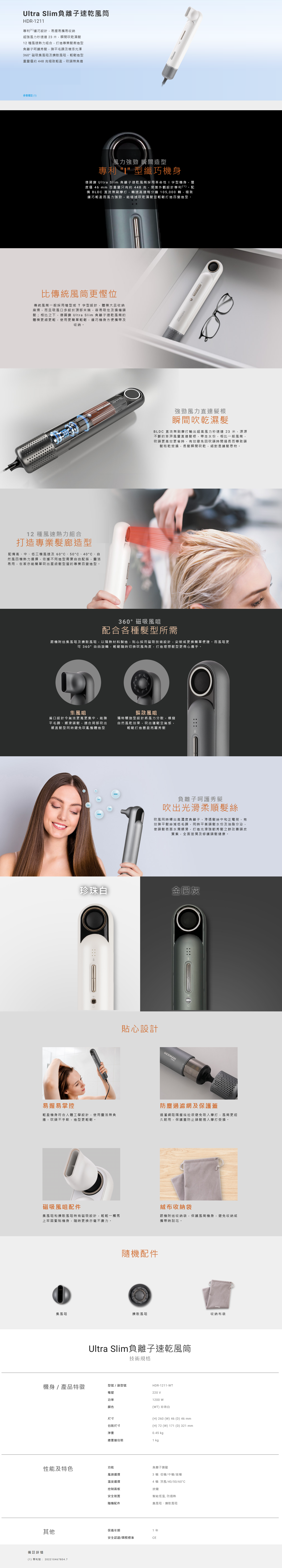 負離子呵護秀髮,撫平毛躁及增添光澤