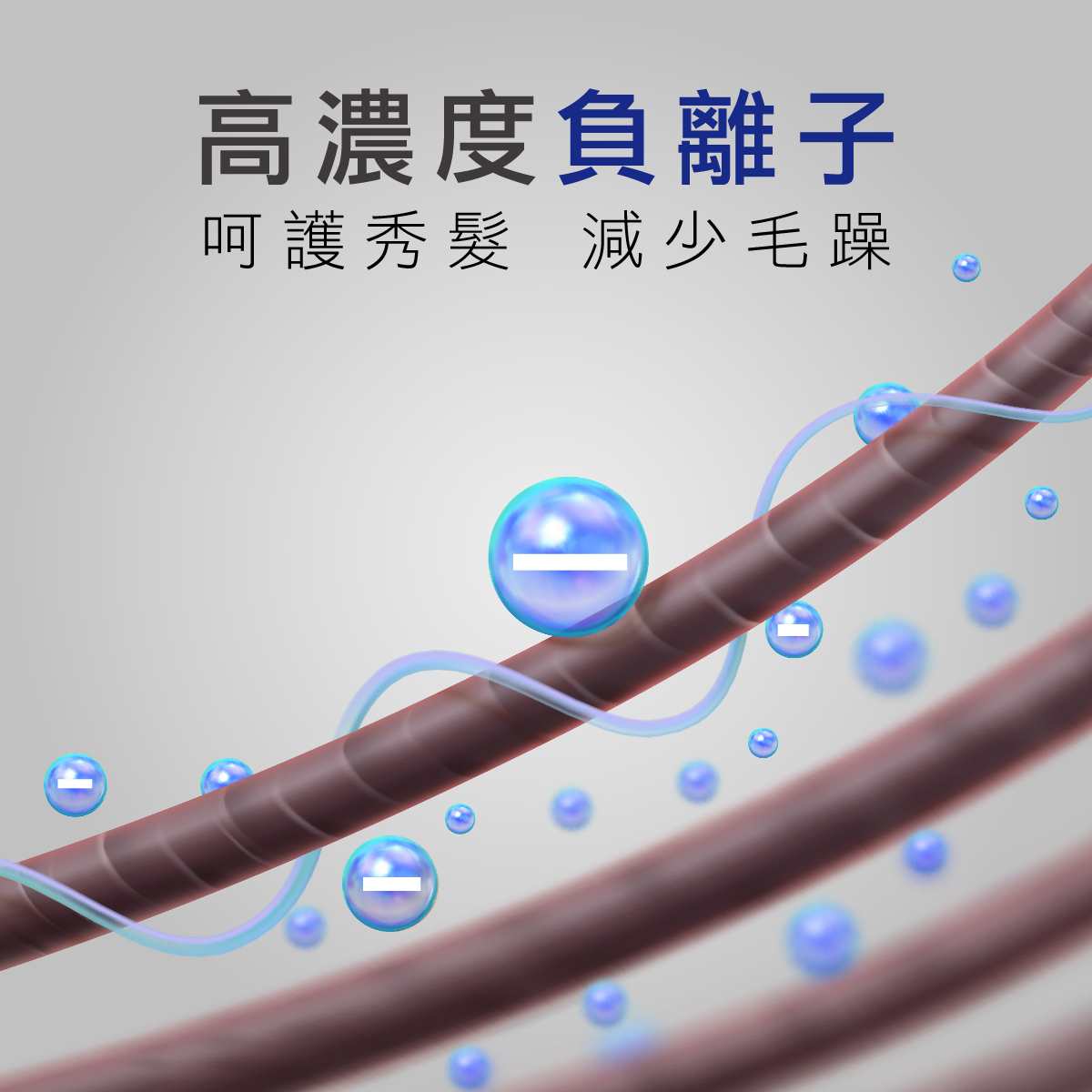 負離子呵護秀髮,撫平毛躁及增添光澤