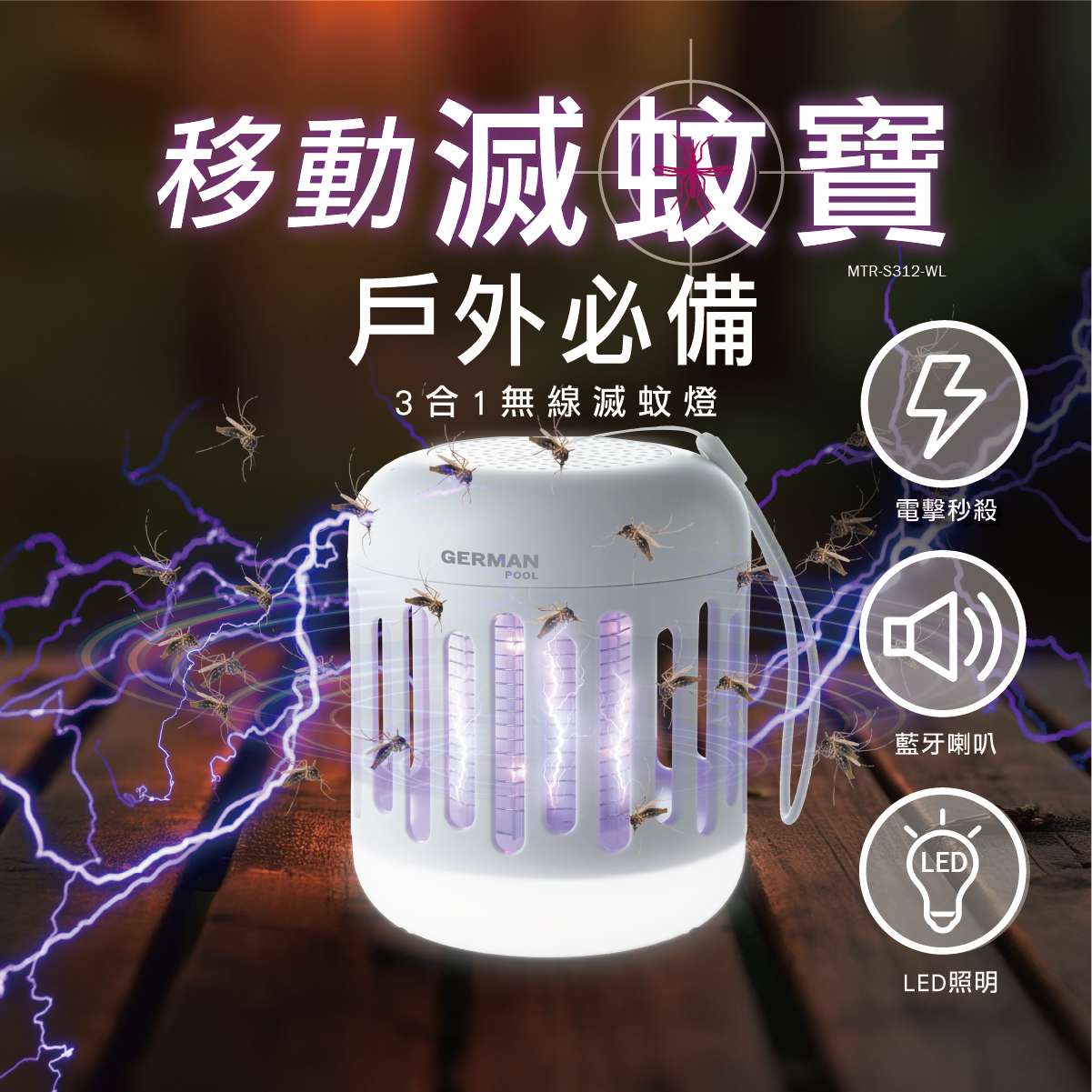 滅蚊燈、藍牙喇叭、照明燈3合1