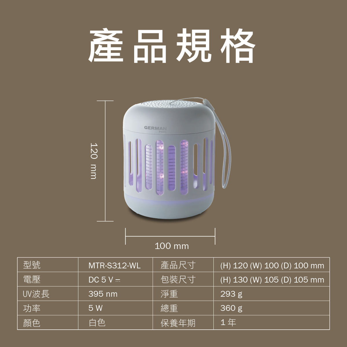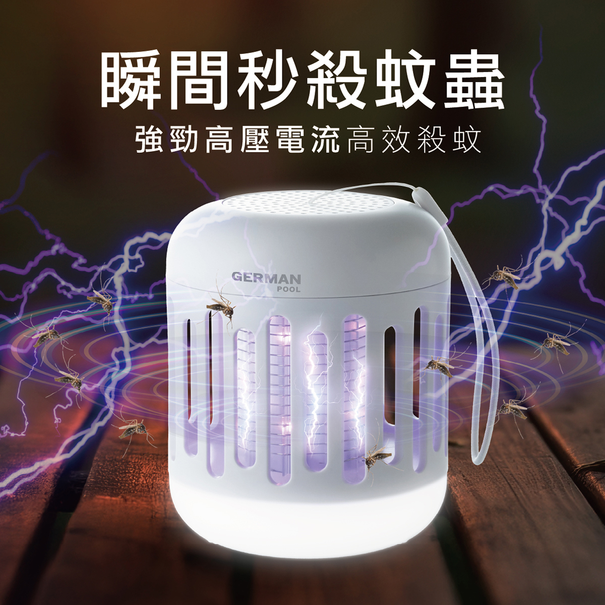 360°環形電網,1000V高壓電流滅蚊
