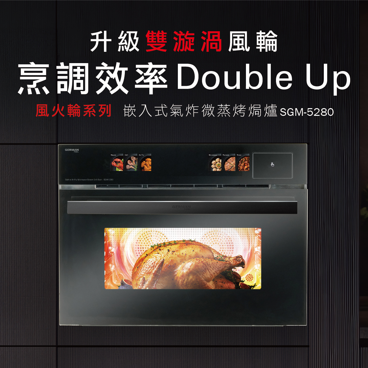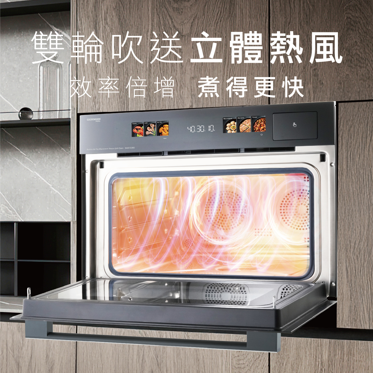 雙輪均勻吹送立體熱風,極速預熱煮得更快