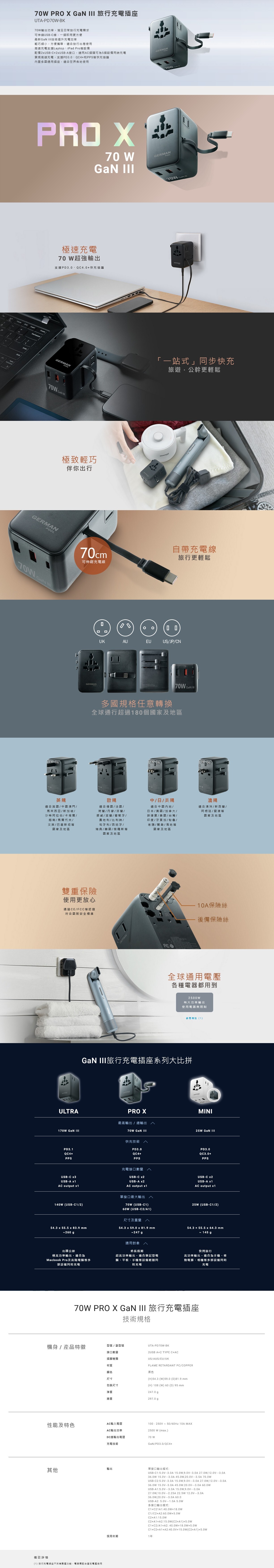 最高達70W的輸出功率,滿足日常旅行使用的充電需求
